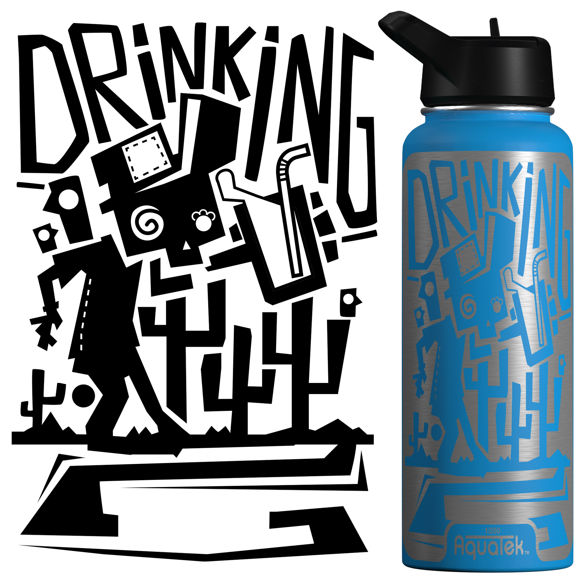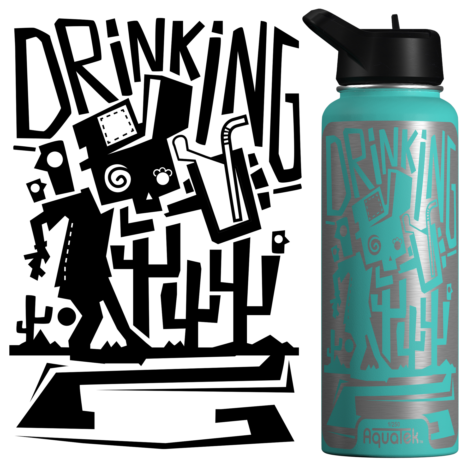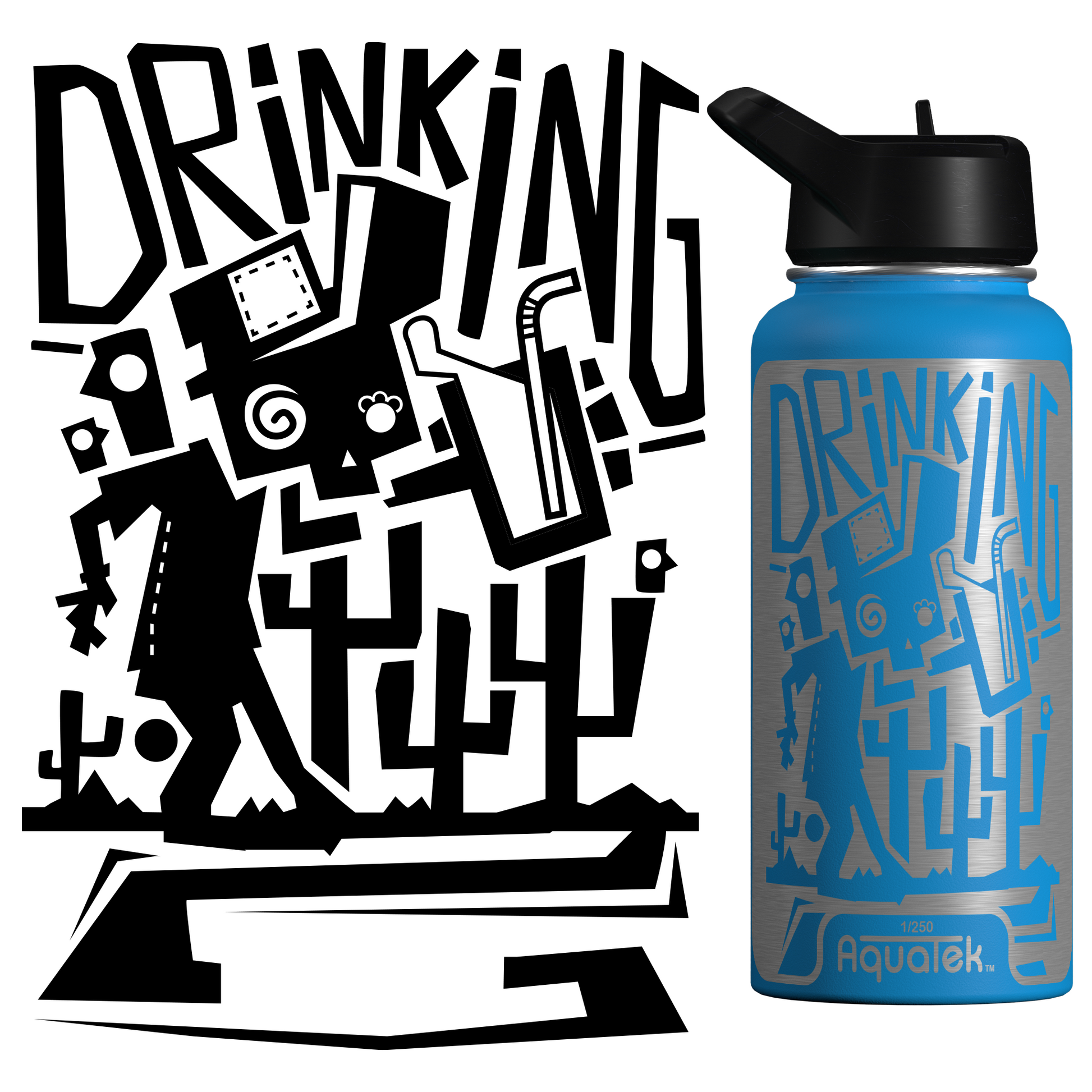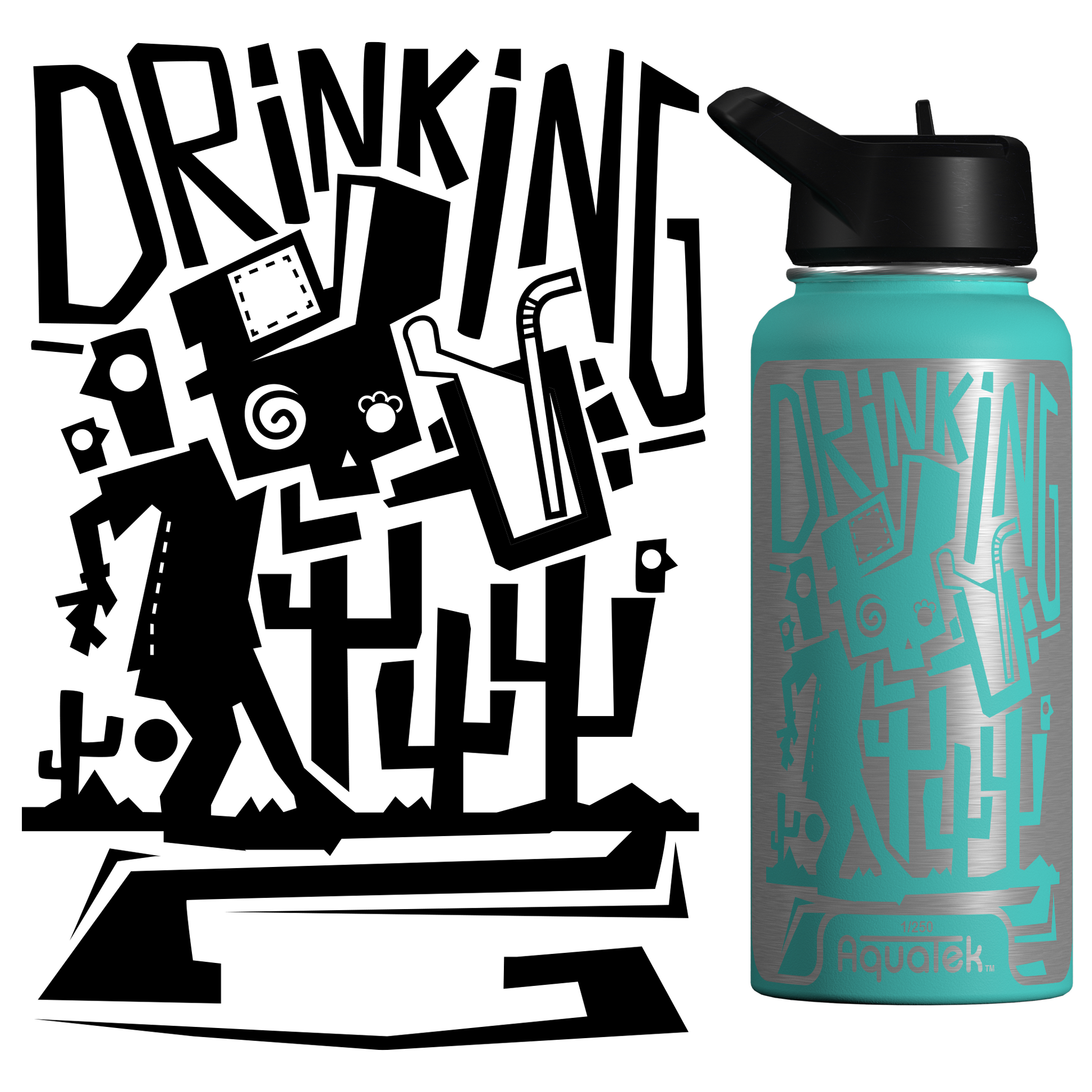 Aquatek art water bottles deliver all day hydration + easy sipping. Because this is art on a bottle, we limit production to 250 per print/size, so pick the piece that resonates with you and support the artist who made it!