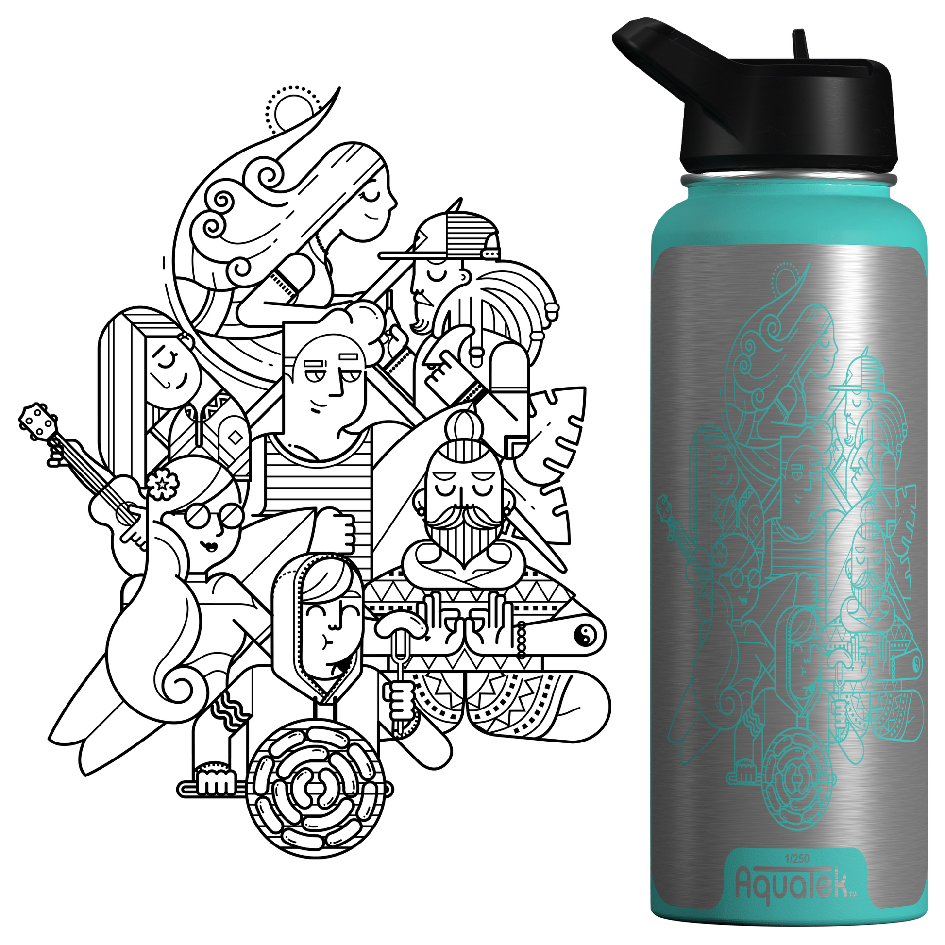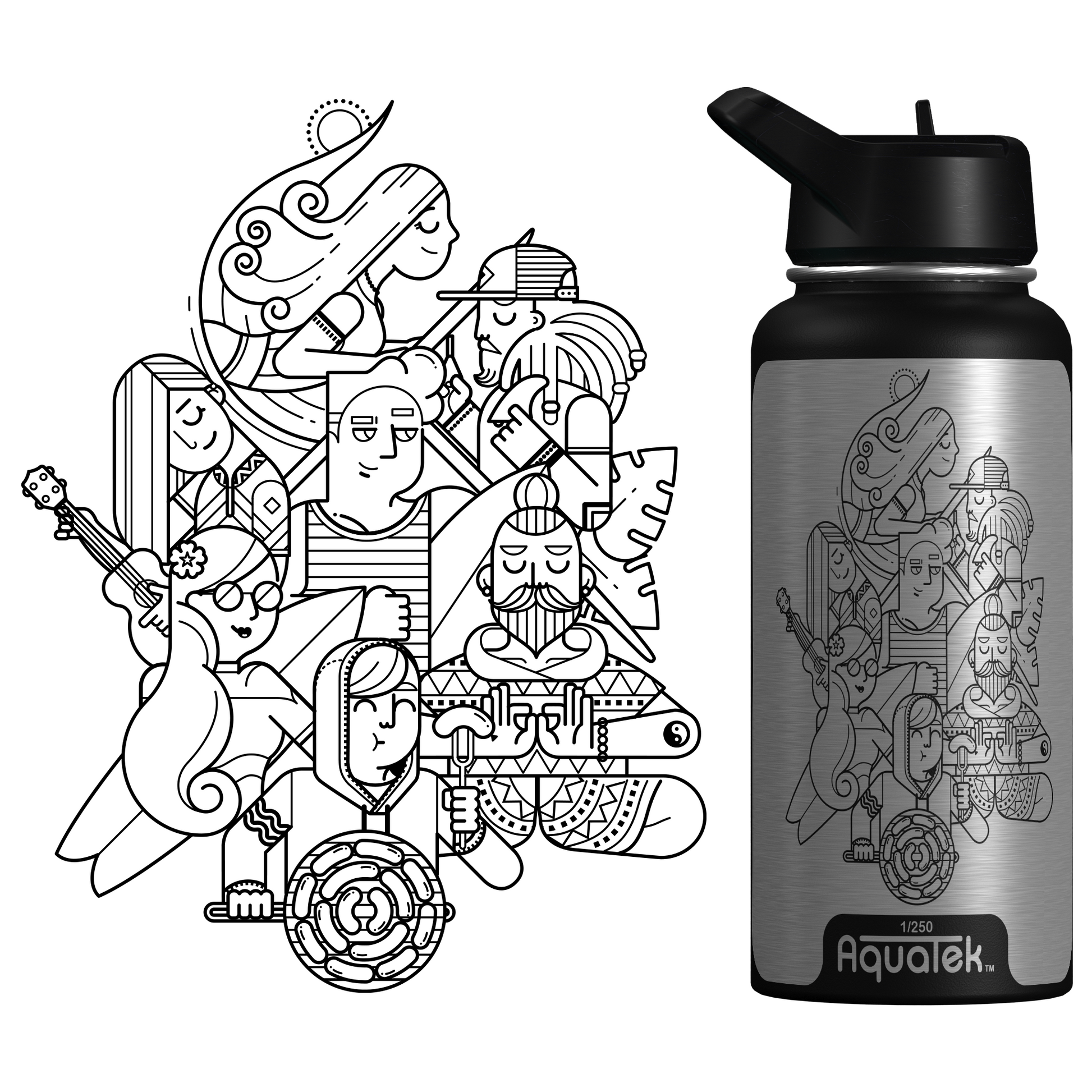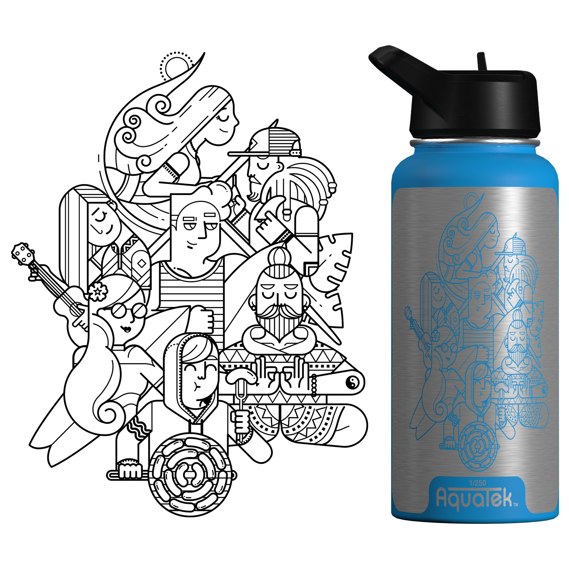 We believe that Aquatek not only produces a bottle that will last anyone a lifetime, but is capable of so much more in the art world and beyond. As a company dedicated to the future, it is our mission to support and build a community with other like minded individuals. To that end - 10% of every purchase goes back into helping these amazing creators maintain their careers as they continue doing what makes them happy!