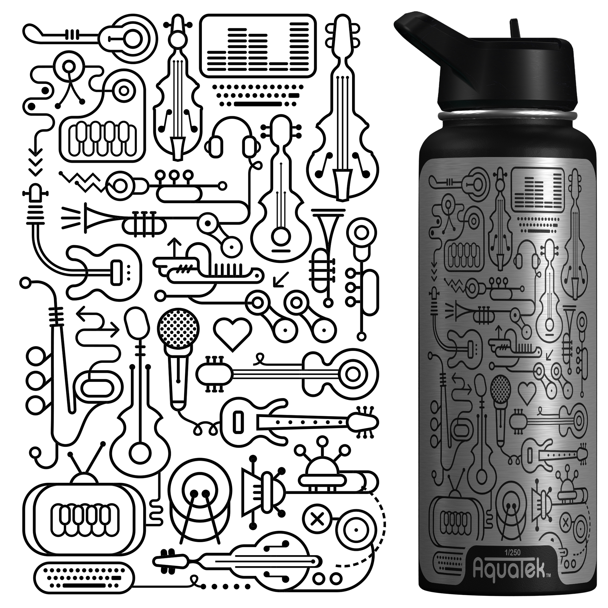 Aquatek art water bottles deliver all day hydration + easy sipping. Cold stays ice cold for 24 hours & hot stays wowza hot for 12 hours! Plus, our bottles are durable pro-grade stainless steel and laser etched with limited production art!