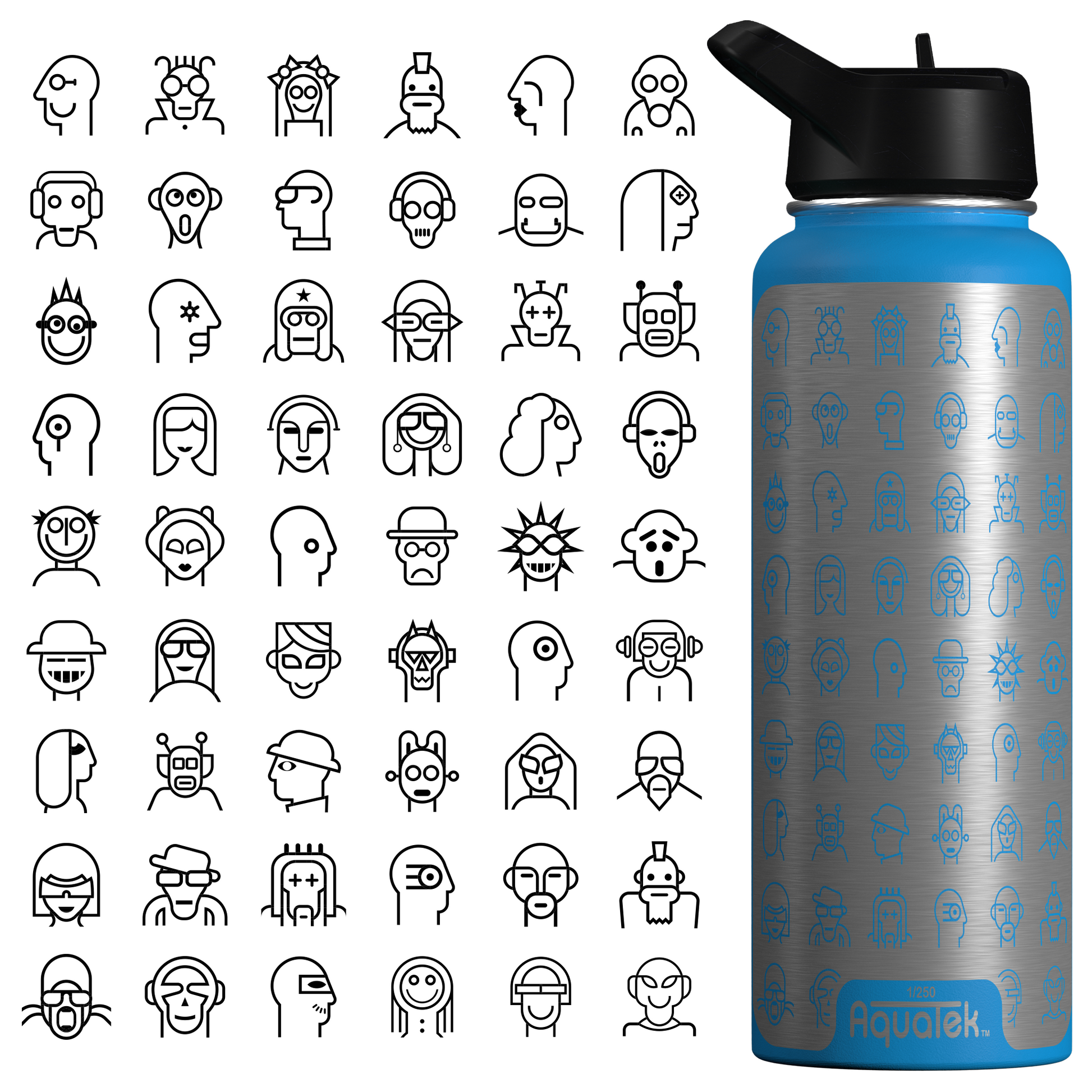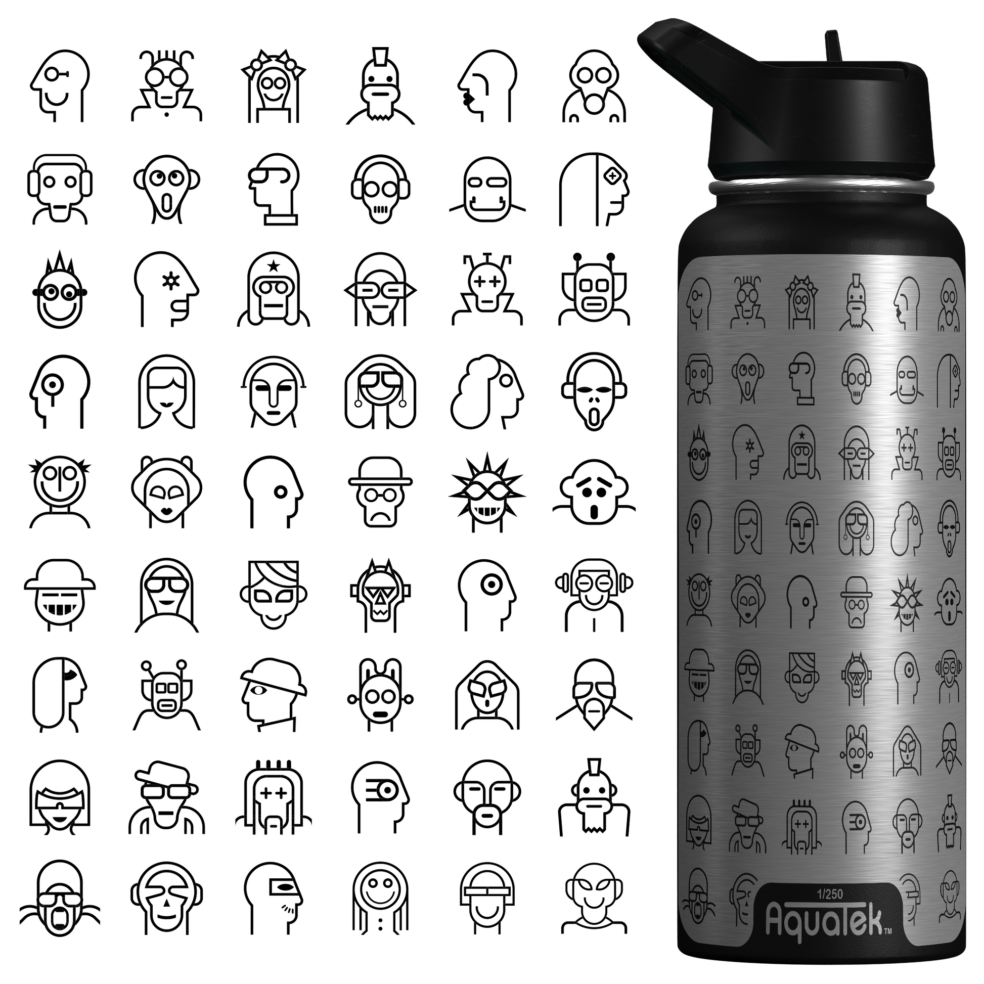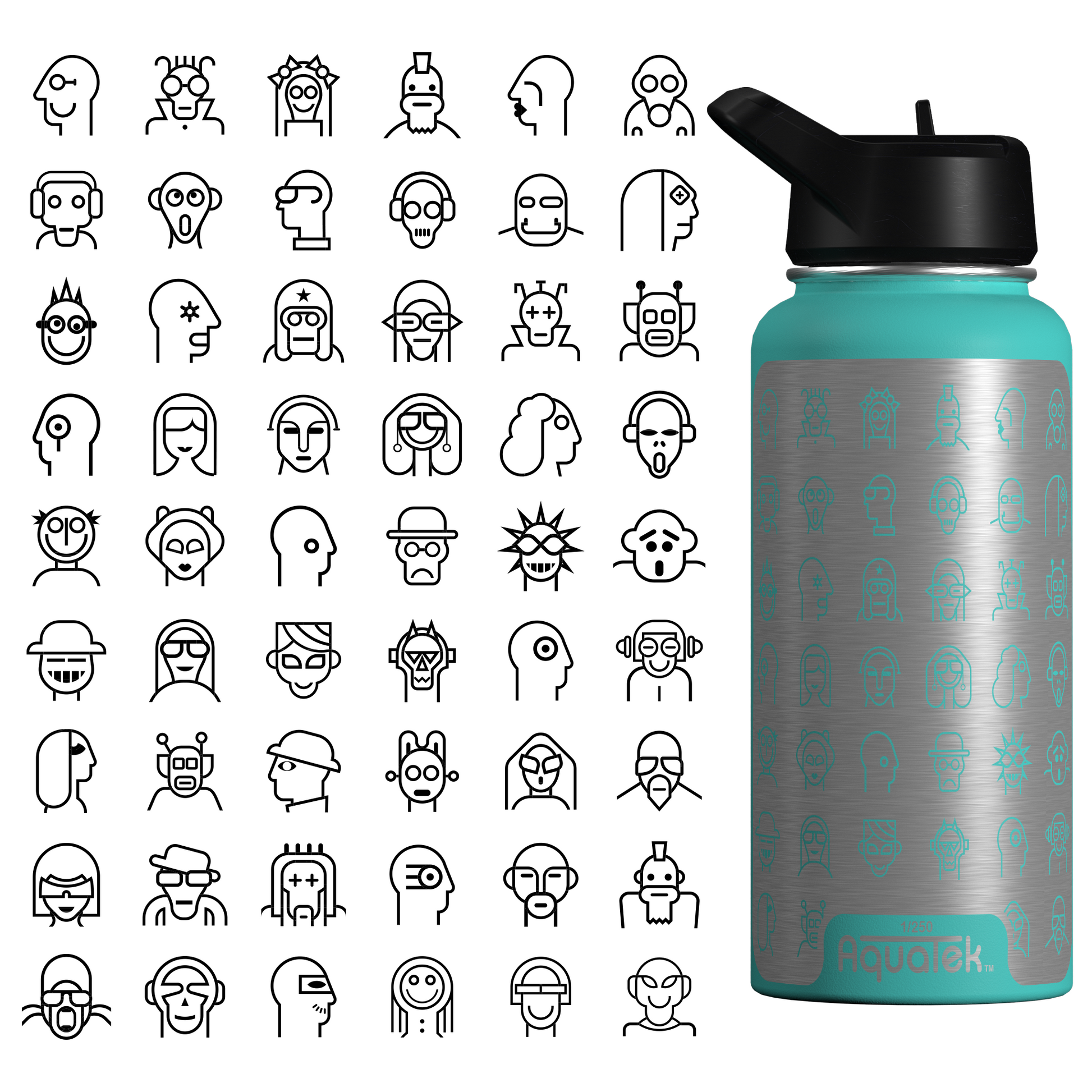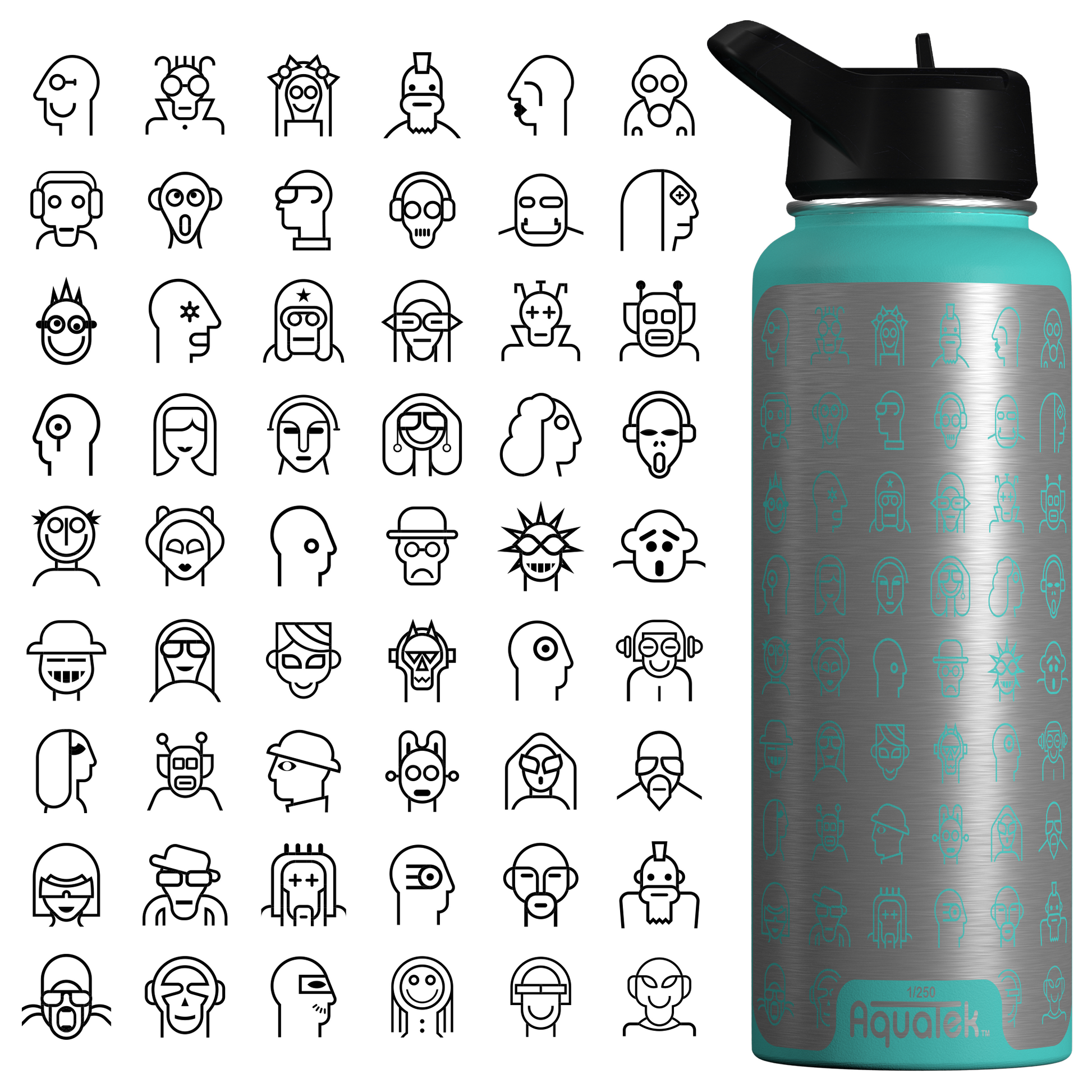 Aquatek art water bottles deliver all day hydration + easy sipping. Cold stays ice cold for 24 hours & hot stays wowza hot for 12 hours! Plus, our bottles are durable pro-grade stainless steel and laser etched with limited production art!