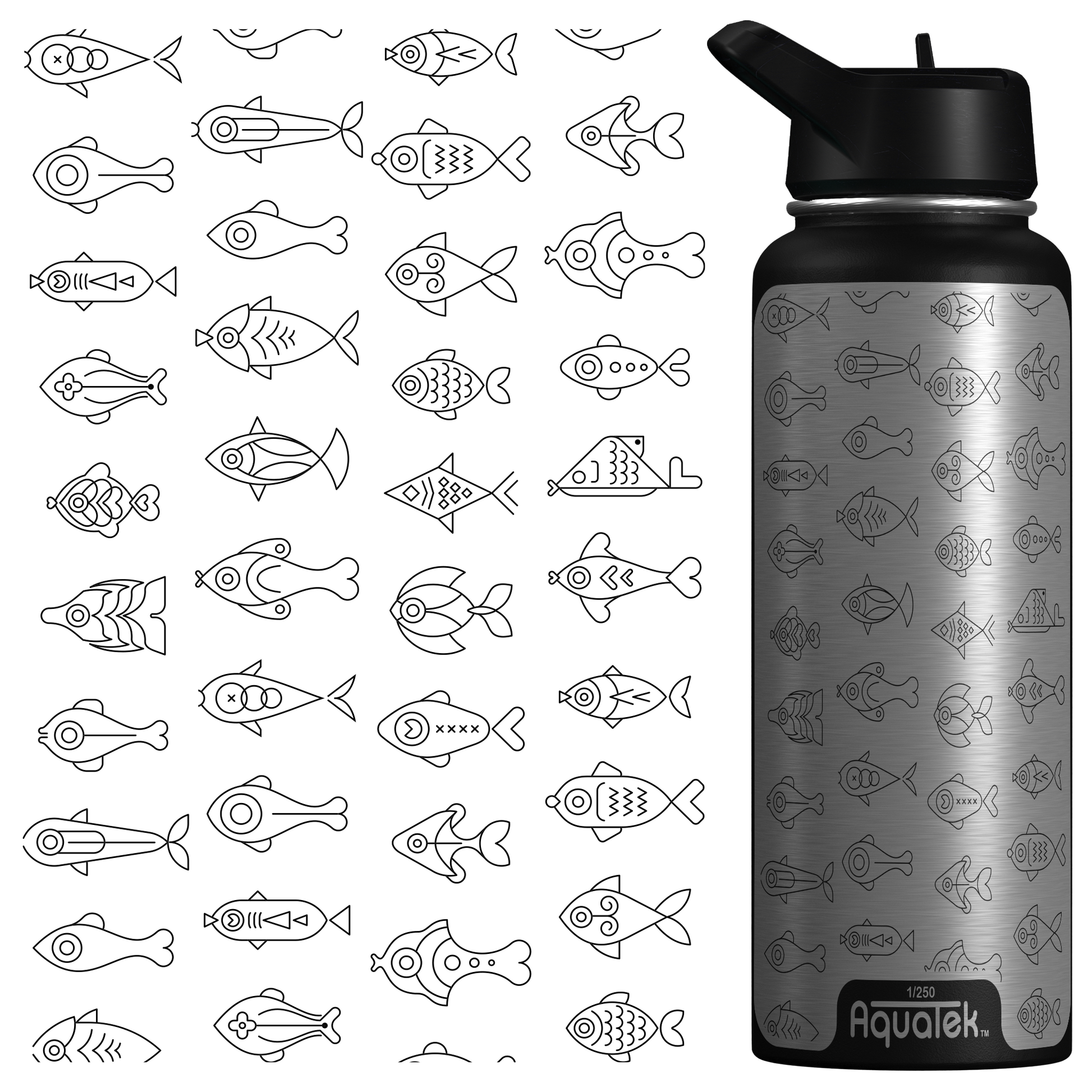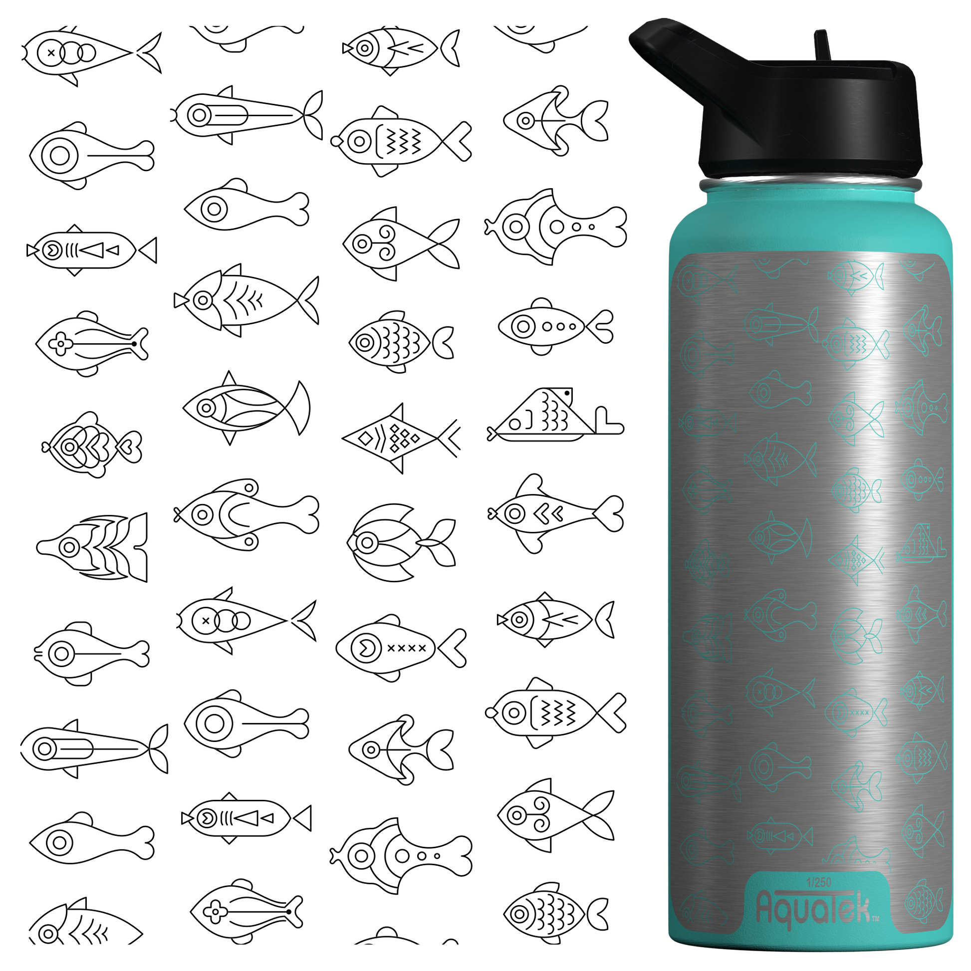 Aquatek art water bottles deliver all day hydration + easy sipping. Cold stays ice cold for 24 hours & hot stays wowza hot for 12 hours! Plus, our bottles are durable pro-grade stainless steel and laser etched with limited production art!