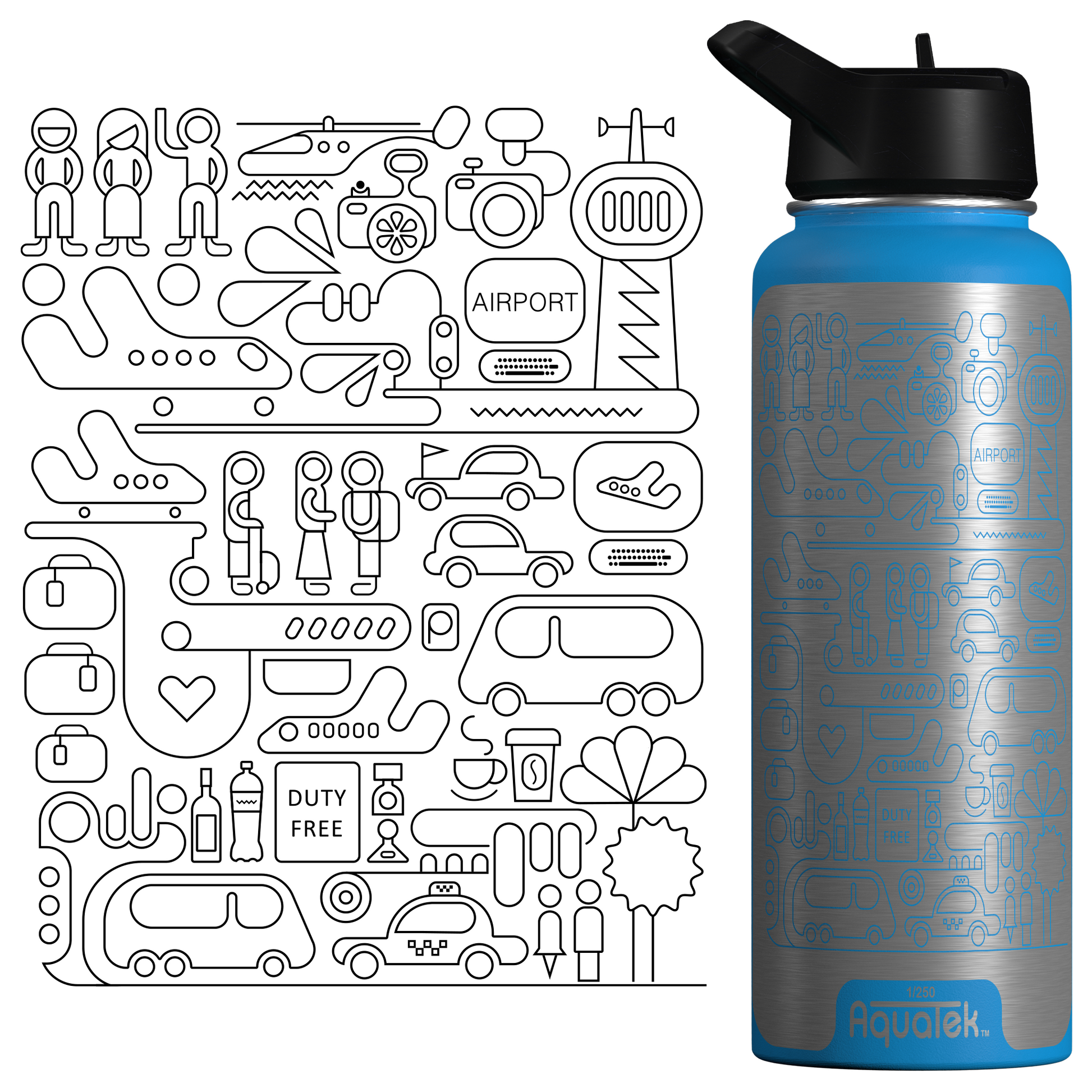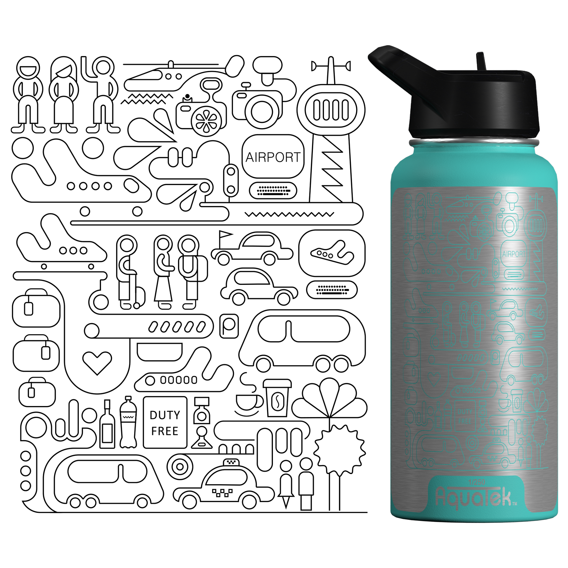 Aquatek art water bottles deliver all day hydration + easy sipping. Because this is art on a bottle, we limit production to 250 per print/size, so pick the piece that resonates with you and support the artist who made it!