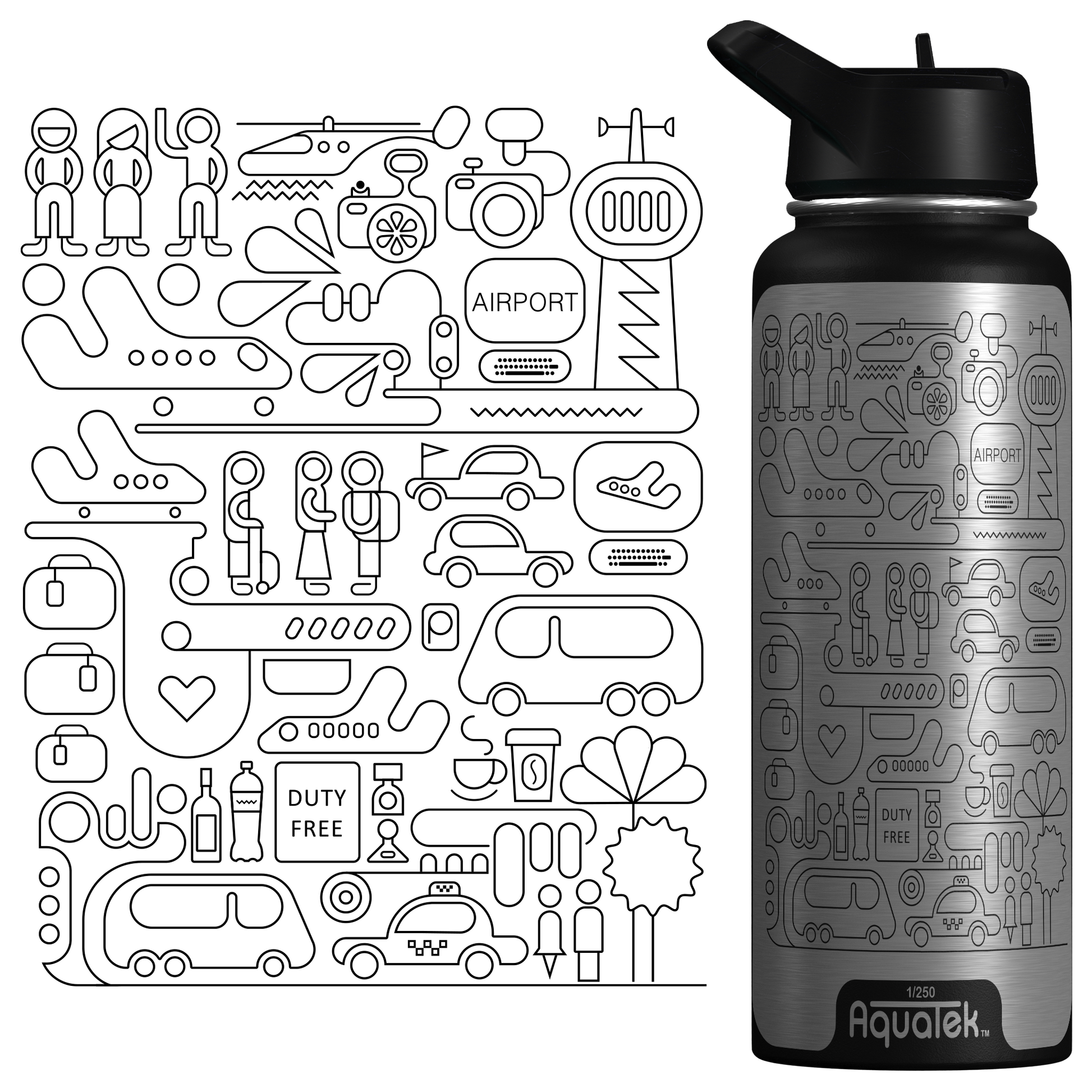 Aquatek art water bottles deliver all day hydration + easy sipping. Cold stays ice cold for 24 hours & hot stays wowza hot for 12 hours! Plus, our bottles are durable pro-grade stainless steel and laser etched with limited production art!
