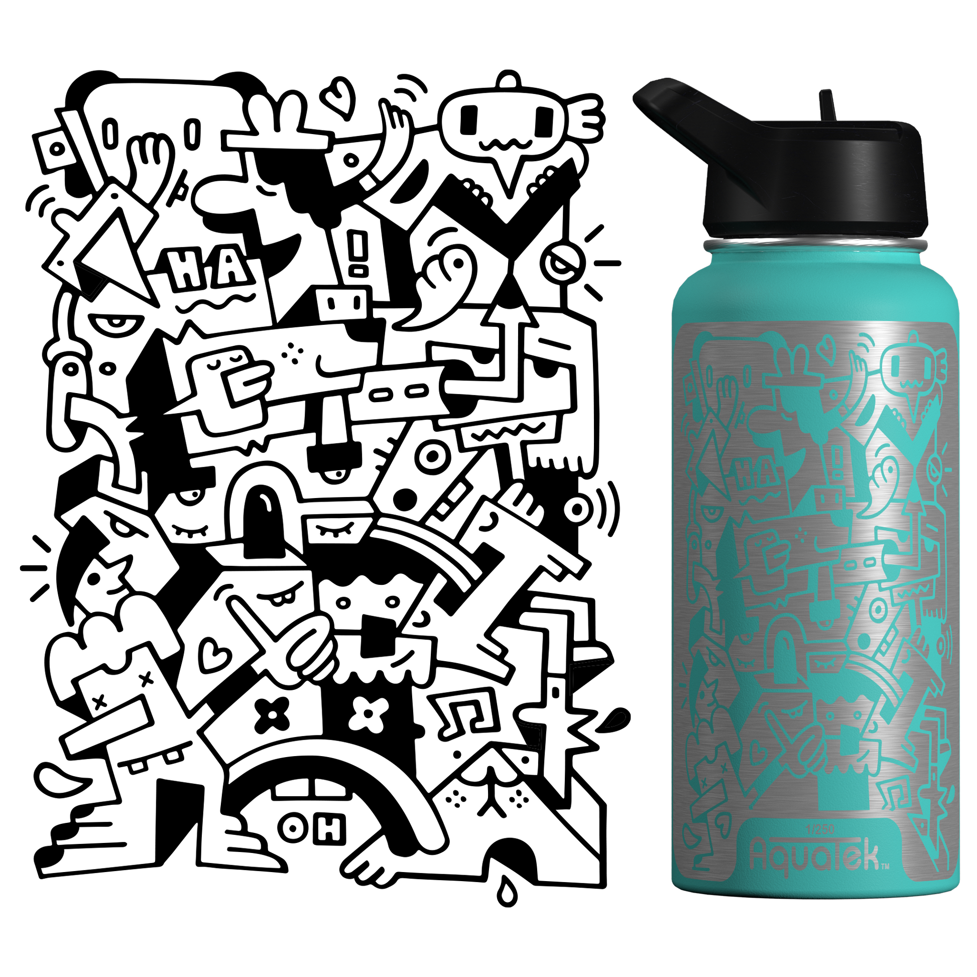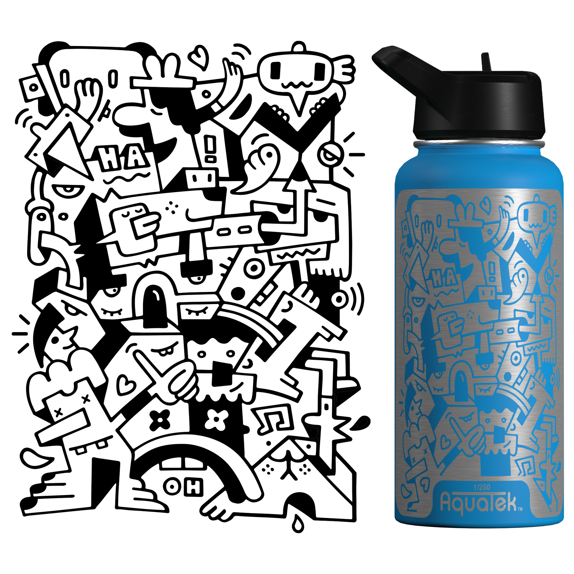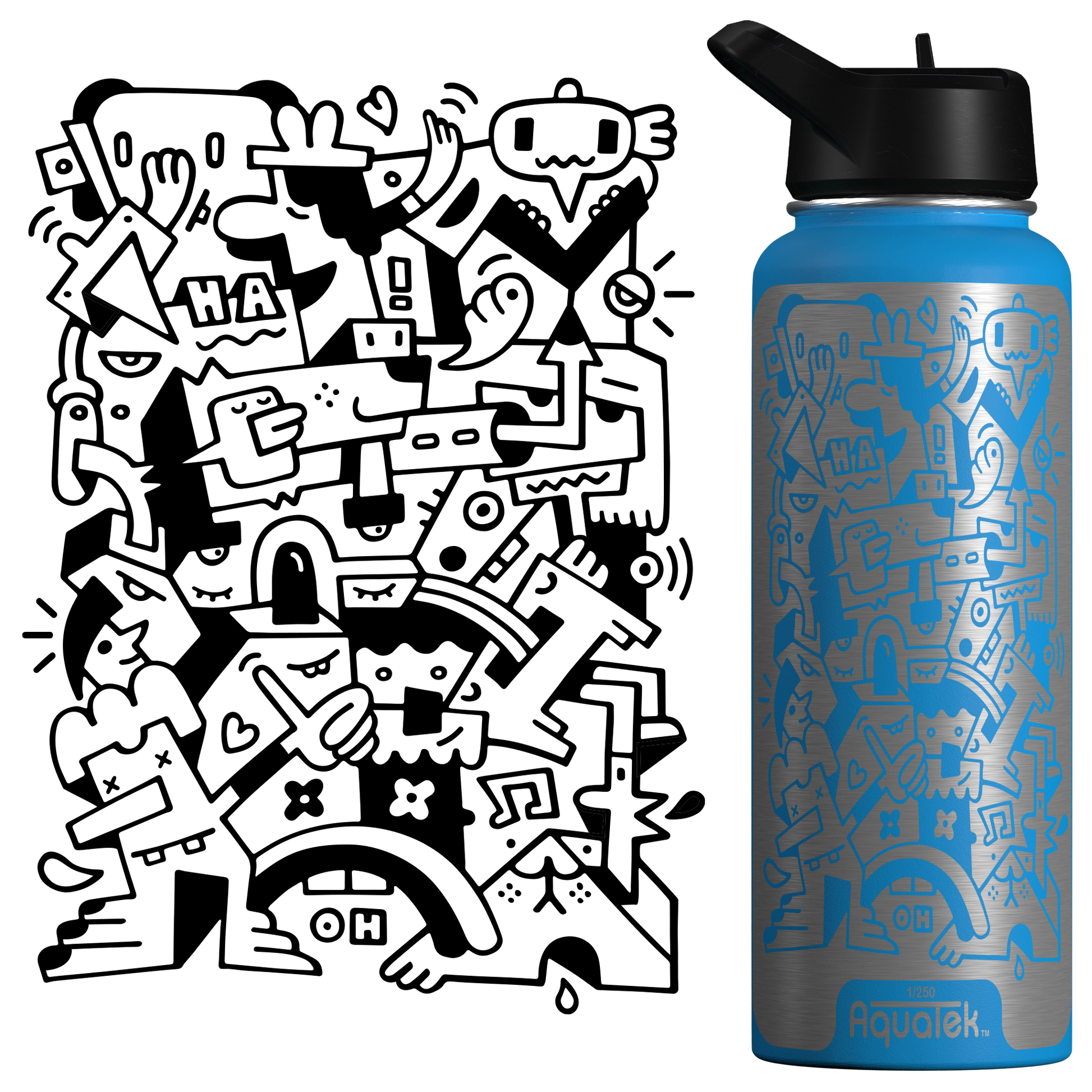 Aquatek art water bottles deliver all day hydration + easy sipping. Because this is art on a bottle, we limit production to 250 per print/size, so pick the piece that resonates with you and support the artist who made it!