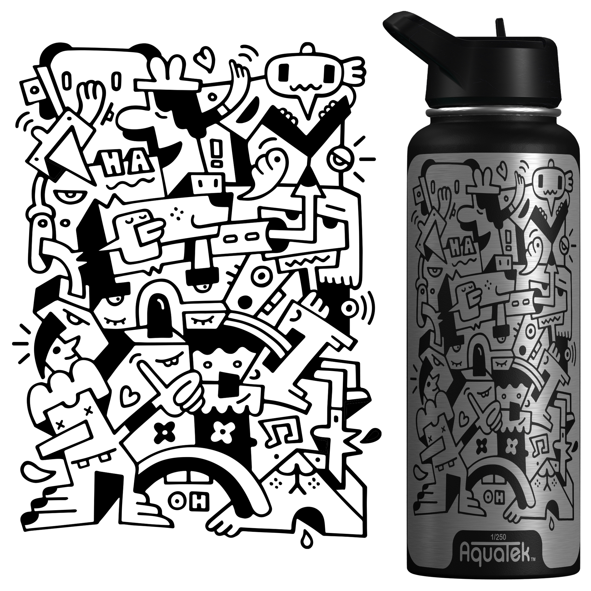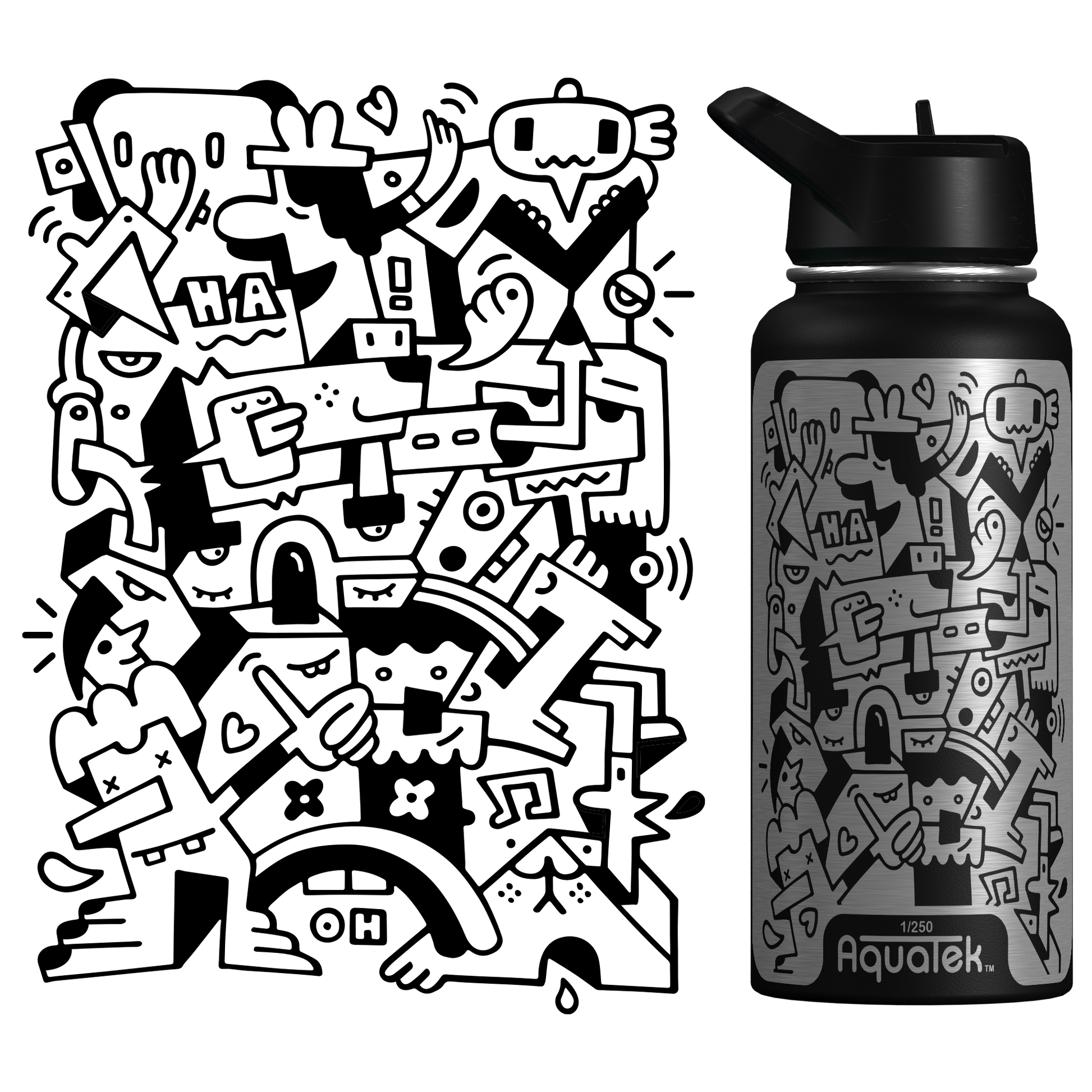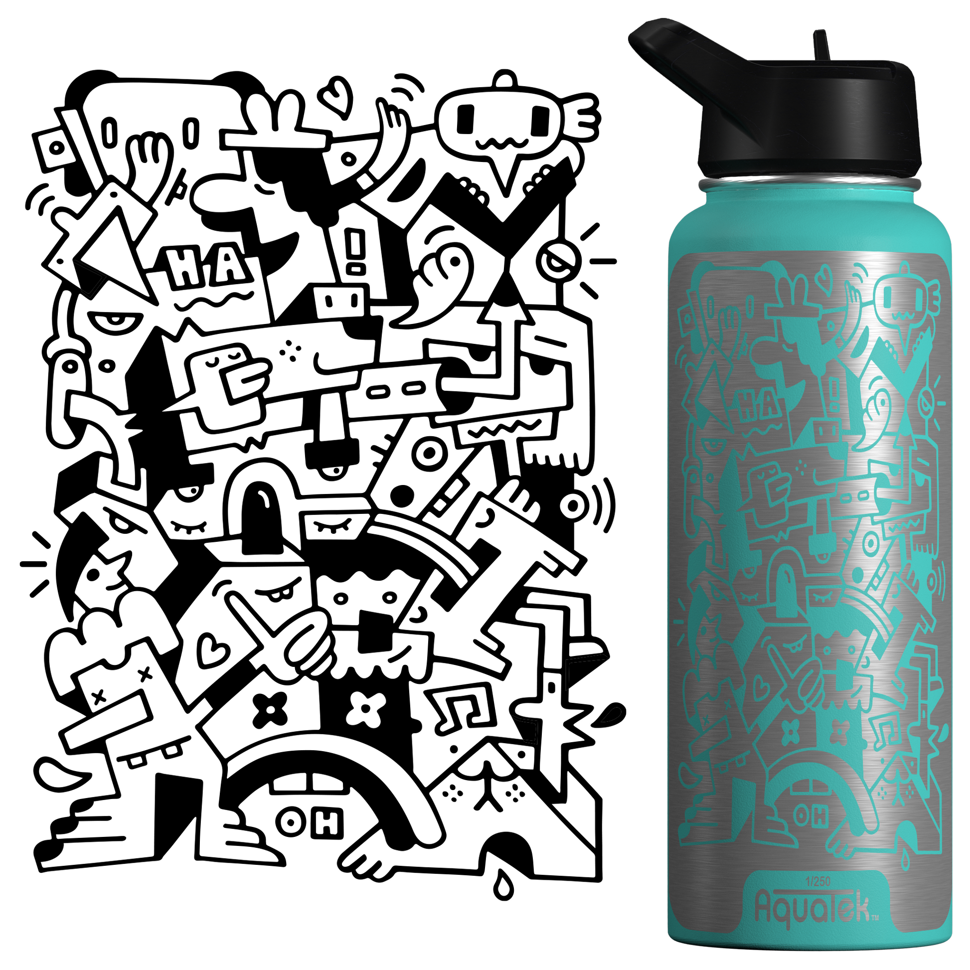 Aquatek art water bottles deliver all day hydration + easy sipping. Because this is art on a bottle, we limit production to 250 per print/size, so pick the piece that resonates with you and support the artist who made it!